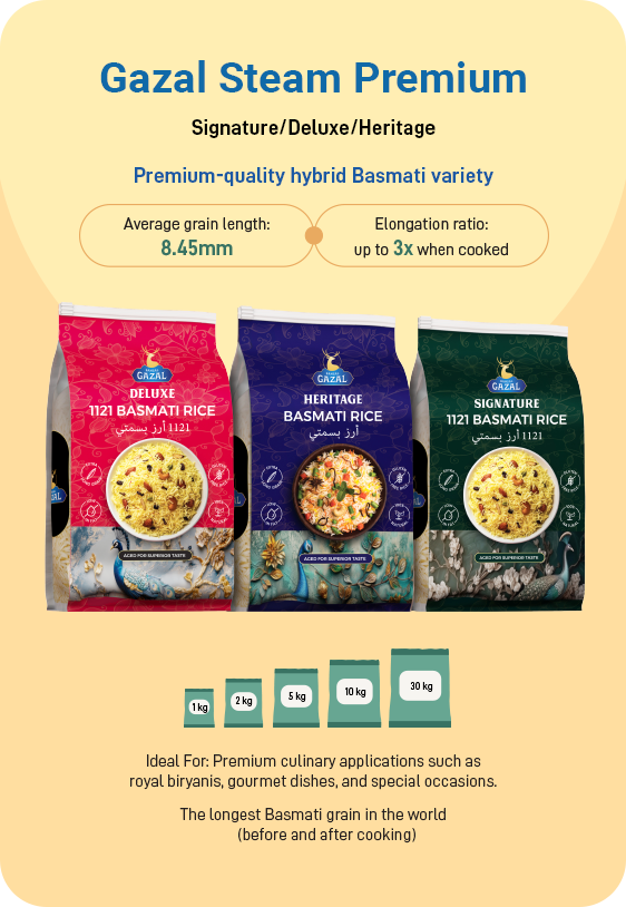 Our Product Range Premium basmati rice naturally aged for rich aroma and long grains. Carefully sourced from fertile Himalayan foothills, delivering fluffy texture and authentic taste in every meal.